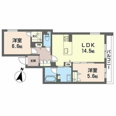 | 間取り | 2LDK(LDK14.5帖 洋室6.6帖 洋室5.6帖) | 主要採光面 | 東 |